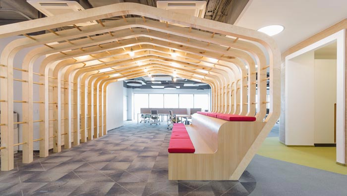 辦公區(qū)域的設(shè)計(jì):設(shè)計(jì)師在設(shè)計(jì)的時(shí)候,將其安置在一個(gè)大的開(kāi)放性空間之中,在設(shè)計(jì)師看來(lái)開(kāi)放式設(shè)計(jì)是辦公的一個(gè)主流設(shè)計(jì)趨勢(shì),設(shè)計(jì)師在設(shè)計(jì)中刪繁就簡(jiǎn),將不必要的東西加以刪除與修改,還員工一個(gè)極簡(jiǎn)的辦公空間,將空間的束縛歸于無(wú)。