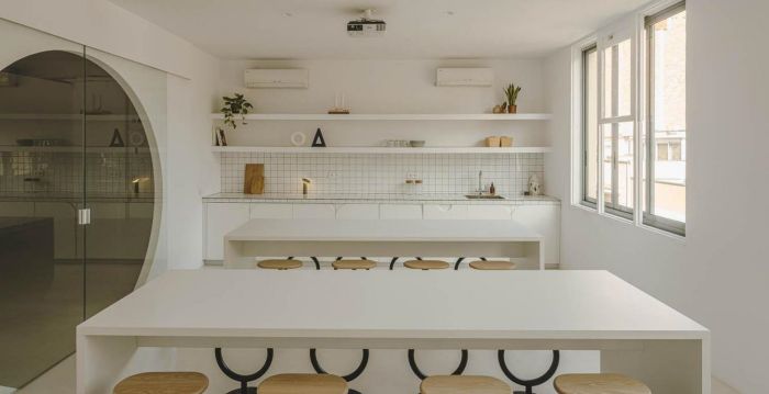 一個長方形的空間,在三個立面上充滿了細節和原始的建筑元素和窗戶。包括會議室和服務區,如廚房、浴室和儲藏室。尋求一種特定的活力,作為舉行非正式會議和電話的空間,同時也可用于演示和臨時展覽。