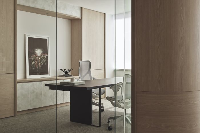 這是一個冷淡風(fēng)的辦公室,辦公空間從入口到室內(nèi)內(nèi)部,每一個元素都給用戶提供了一種幸福和平靜的感覺。空間內(nèi)部整體為開放式辦公室,區(qū)域或者隔間中使用百葉窗和藤條屏風(fēng)進(jìn)行分隔。