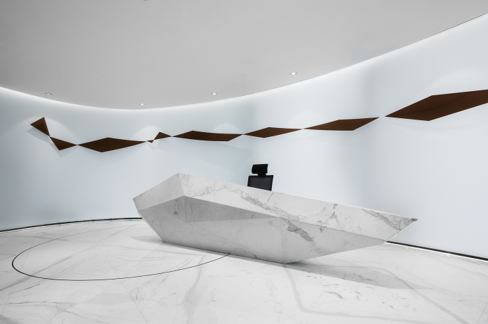 設(shè)計(jì)師在設(shè)計(jì)辦公空間時(shí),不僅要考慮使用、功能、視覺、風(fēng)格和儲物等方面,還需要考慮人與人之間的溝通便捷和高效的管理。設(shè)計(jì)師運(yùn)用了影視的膠片形式和蒙太奇的片段組合,將空間打造成一個包容接納創(chuàng)新的地方。金屬制作的明確醒目標(biāo)識體現(xiàn)了堅(jiān)實(shí)的基礎(chǔ)和輕盈的手法。