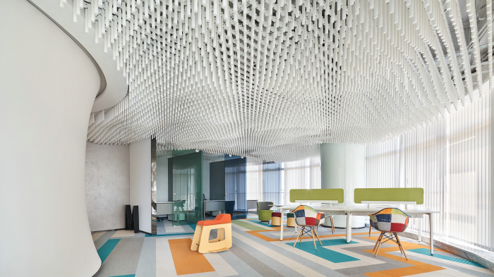 空間設(shè)計(jì)需要考慮到人與人之間的相對獨(dú)立和中間的溝通平臺設(shè)計(jì),以使之高效。同時(shí),也要設(shè)計(jì)多個員工交流的空間,讓員工們在換個環(huán)境中舒緩壓力,調(diào)整情緒,提升整體效率。