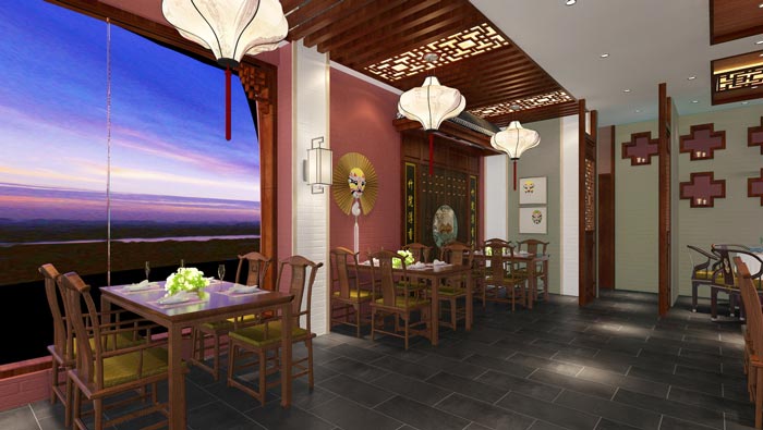川菜館進(jìn)門(mén)區(qū)裝修設(shè)計(jì):客戶進(jìn)入餐館后,空間給客戶的第一感覺(jué)就是鳥(niǎo)語(yǔ)花香,這意境、這景色、這氛圍,給客戶一個(gè)不錯(cuò)的第一感覺(jué),讓客戶喜歡這里,是設(shè)計(jì)的第一考慮。