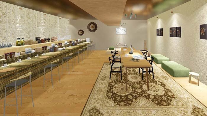 本次為自助茶餐廳裝修設計方案,在本次茶餐廳設計中,重點以茶、糕點為出發點,中國有很悠久的茶文化,品茶是一種藝術、是一種享受,話說“文人品茶,俗人喝茶”,在這里講究的是一種生活態度,設計師希望在這里讓客戶尋回曾經那美好的生活,讓客戶在這里得到暫時的安寧。