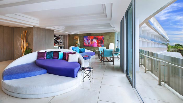 海景客房的設計:環顧四周在這里顧客看到的是汪洋的大海,這樣的感受不到現場是無法體會的,對于大海相信每一個都充滿了敬畏,但是很多人由于眾多原因無法親臨感受,設計師以此為目的打造了這樣的客房,讓顧客在這里見證海洋的魅力與感受海洋寬廣的胸懷。