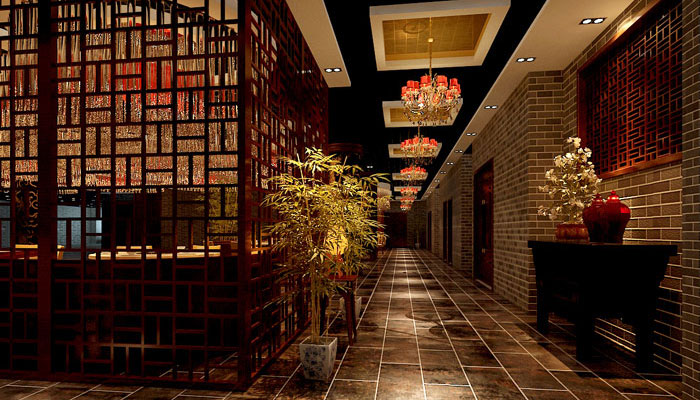 中式風格火鍋店過道裝修設計案例效果圖