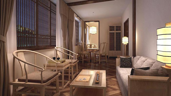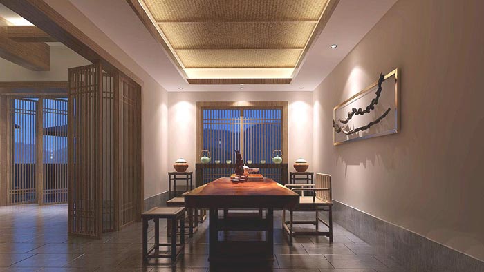 茶文化主題酒店雙人套間裝修設計案例效果圖