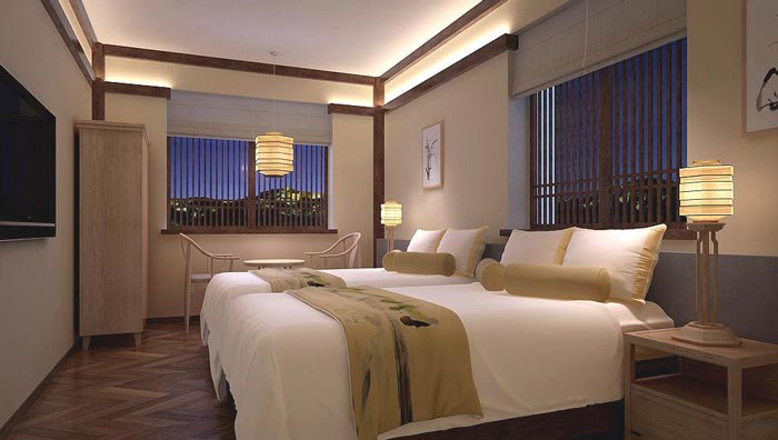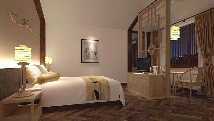 茶文化主題酒店雙人客房裝修設計案例效果圖