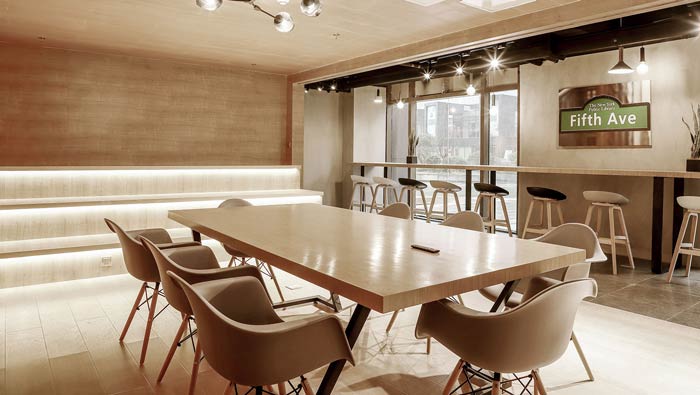 咖啡店共享空間設計:這里展現(xiàn)的是自己的個性,是一個年輕的載體,這里承載了多數(shù)人的夢想,急切地展示著自己的個性,共享空間讓這一切成為可能。