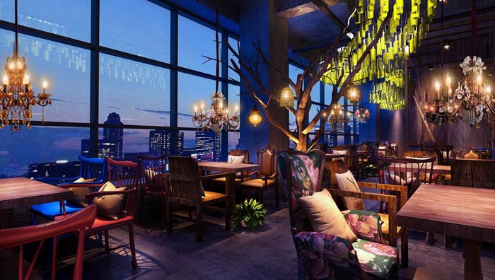 燒烤店餐桌裝修設計:兩人區、四人區、六人區、八人區,設計師將其按照一定的比例安置在空間之中,設計師要做的就是讓你中有我、我中有你,將空間開發到極致。