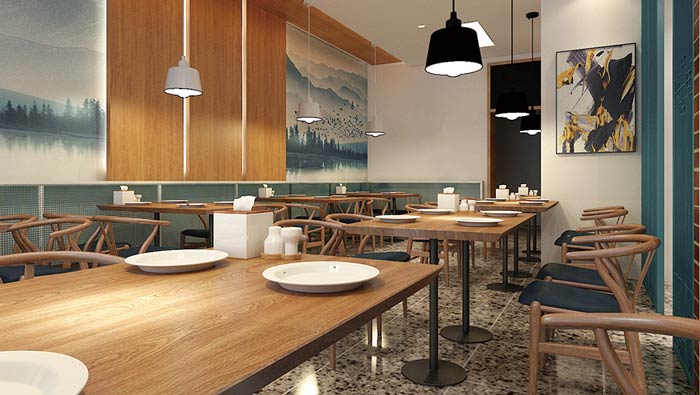 本次燜面館裝修設計方案講解到此結束,設計師在燜面館設計中,去除了一些華而不實的設計,讓面館處處都兼顧實用,以實用為導向,讓燜面館更具人性化,讓燜面館具有自己獨特的特色。