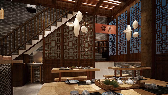 中式面館樓梯裝修設(shè)計:“客觀樓上請”,相信大家都不陌生,這在電視劇里面經(jīng)常會聽到,但在現(xiàn)實生活中相信幾乎聽不到,這里有這個條件,讓客戶在這里親身體驗一次。