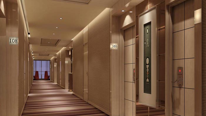 走廊的設(shè)計:我們在此處第一眼看到的就是房間標志,這也是設(shè)計師特意為之,因為在設(shè)計師看來,酒店的優(yōu)點是大而全,但是缺點就是房間過多,會讓顧客感受無所適從,在尋找房間的過程中會遇到很大的阻力,這也是現(xiàn)在酒店設(shè)計中都會注意的一點,此處設(shè)計師采用柔光與空間的對比,讓顧客可以輕松的知道自己在那里,讓客戶不會迷失。