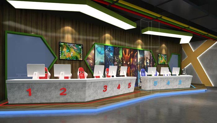 設計理念:設計師在藍月亮網咖裝修設計的時候,經過和業主的多次交談,了解到業主希望可以將網咖打造成愉悅空間。