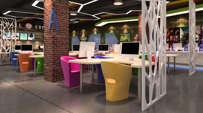 設計師在網咖功能分區,以人性化的服務理念為主,旨在為您打造愉悅空間,設計師希望通過不一樣的風格,為大家帶來享受和舒適的空間。