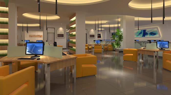 根據(jù)業(yè)主的要求,網(wǎng)咖設(shè)計(jì)的整體顏色以淺色為主,中間穿插對(duì)比強(qiáng)烈的撞色系來展現(xiàn)效果。