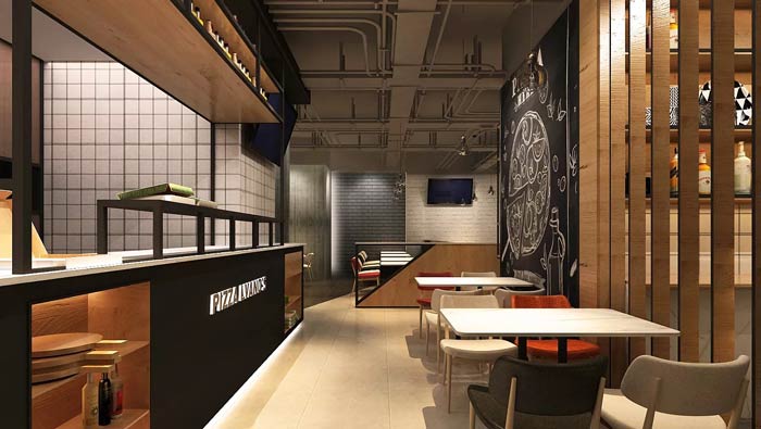 本次為主題西餐廳裝修設計方案,餐廳只經營三樣,一樣是披薩,一樣是小吃,一樣是飲品,披薩做為餐廳的主營餐品,小吃、飲品做為飲食的配套存在,設計師在西餐廳設計中,以披薩為設計主題,以小吃、飲品為輔助,設計師希望為企業打造一個優質的西餐廳設計。