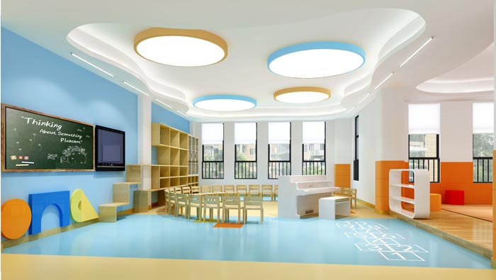 教室的設(shè)計:在這里最引人矚目的就是座椅的排列方式,這也是設(shè)計師偶然而來,設(shè)計師的目的就是希望減輕教師的負擔,同時也可以拉近彼此之前的關(guān)系,在這里沒有好、差之分,有的就是和平共處、快樂的成長,同時寓教于樂也是幼兒園的辦學宗旨。