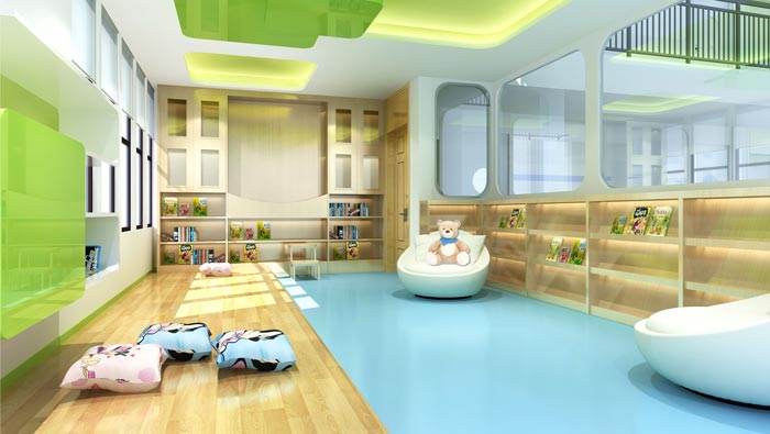 閱讀區(qū)域的設(shè)計:在這里有著各種各樣的圖畫,孩子們可以在這里欣賞到自己喜歡的各種各樣的書籍,讓孩子們從小養(yǎng)成獨立學習的習慣,設(shè)計師在設(shè)計中,特別強調(diào)隨意、自然,故此在設(shè)計中沒有規(guī)定座椅的位置,設(shè)計師希望在此處孩子們可以不受任何的干擾,做自己想做的事情。