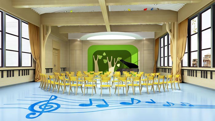 音樂教室的設(shè)計:在這里孩子們仿佛進入了音樂的世界,在這里孩子們可以翩翩起舞,音樂最是能夠打動每個人,設(shè)計師希望孩子們在載歌載舞之中,可以釋放自己的天性,讓音樂喚醒孩子們天真爛漫的個性,讓孩子們在學習的過程中可以一直保持初心。