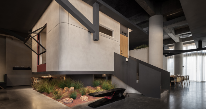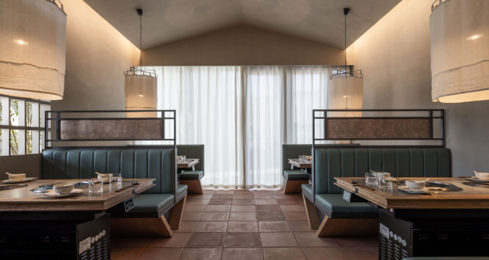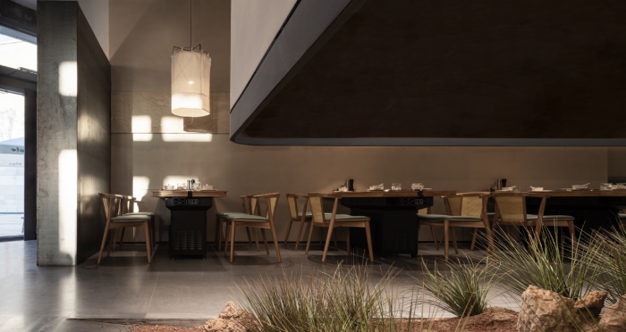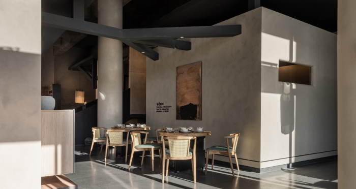 這是“侘寂煙火-如熹RUXI”餐廳的設(shè)計理念和品牌故事。餐廳以打邊爐為核心,強(qiáng)調(diào)“侘寂”美學(xué)的孤寂與市井煙火的對比。設(shè)計師通過將空間化零為整、打通室內(nèi)邊界,營造出人與自然之間的深層關(guān)系。空間設(shè)計以“侘寂煙火”為主題,運(yùn)用開放界面和透明封閉界面,將自然光引入作為主要照明方式,創(chuàng)造出豐富的光影韻律。設(shè)計希望通過空間的沉浸感讓食客放松下來,享受當(dāng)下。整體空間設(shè)計質(zhì)樸自然,融入了水墨元素,增加了調(diào)性和趣味性。通過在“侘寂”中感受人間煙火氣,設(shè)計希望重新尋找通往松弛和諧的理想生活。