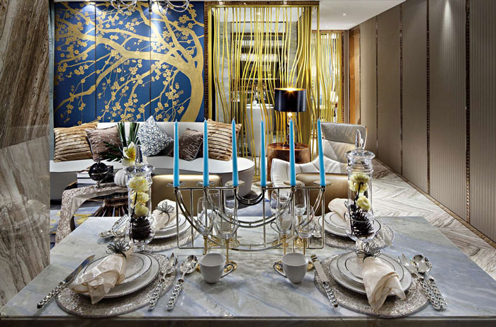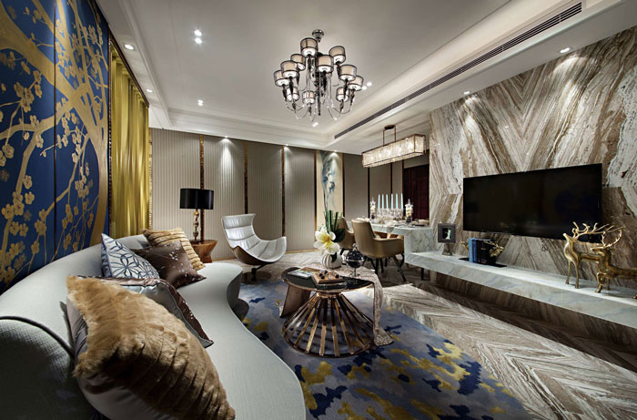 在軟裝的配飾中運(yùn)用了新古典后現(xiàn)代的家具風(fēng)格,讓略顯沉悶的空間增添了時尚奢華的氣氛;