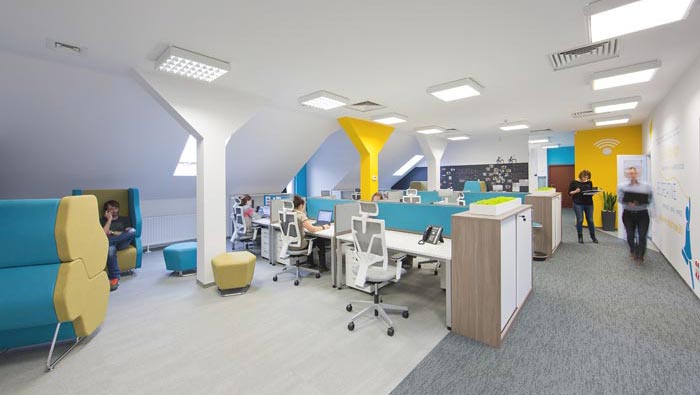2:越來越多的企業(yè)開始摒棄繁縟、豪華的裝修,力求擁有一種自然簡(jiǎn)約的辦公空間;