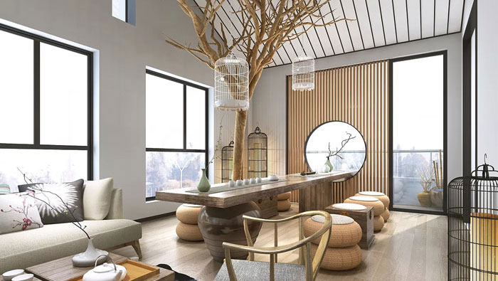 3:新中式同時打破了,傳統中式空間布局中等級、尊卑等文化思想,空間配色上也更為輕松自然。