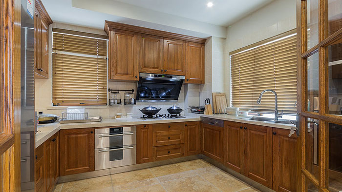 4:在裝飾上也有很多講究,如喜好仿古面的墻磚、櫥具門板喜好用實木門扇或是白色模壓門扇仿木紋色;