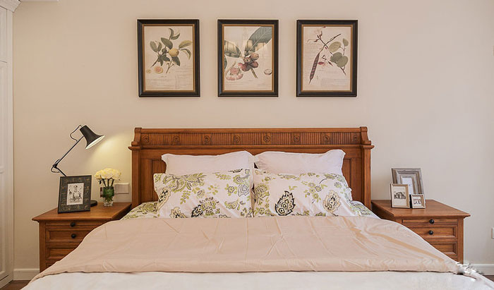 1:美式家居的臥室布置較為溫馨,作為主人的私密空間,主要以功能性和實用舒適為考慮的重點;